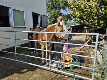 Das Abenteuer "Claus Luber" beginnt. 12 Personen aus unseren Reihen sind gut auf dem Haflingerhof Luber in der Nähe von Nürnberg angekommen. Bei bestem Wetter durften wir sogar beim Waschen der wundervollen Hengste helfen.