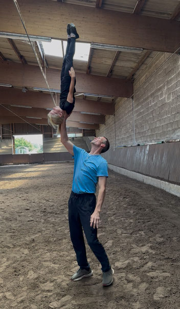 Jetzt trainieren wir erst noch mal etwas alleine um heute Abend noch auf den Hengsten vor der Kutsche ein paar Sachen auszuprobieren.
