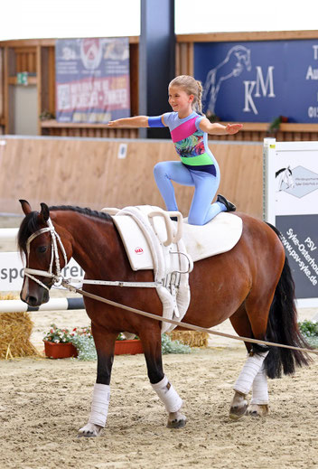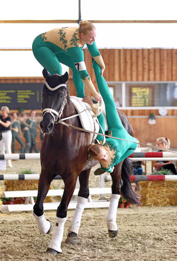 Nono und Hendrik groven sich an der Longe immer mehr als Team ein und sicherten sich eine Pferdenote von 6,7. Auch die kleinen Voltistars turnten schöne Übungen, vor allem die Jüngste, 4 Jahre alt, war einfach klasse!