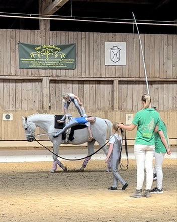 Unser Gruppenpferd ist der liebe Loh. Er verzeiht mal einen Fehler, ist super lieb auf Turnieren und vor allem können wir alles auf ihm turnen. Wir freuen uns jetzt schon riesig auf die nächste Saison mit ihm in den Zirkel einzulaufen!